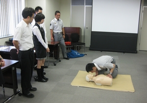 第一住宅では、本部ビル及び各事業所の周辺を清掃する活動を行っており、地域環境保全の一環として、清掃・美化活動を積極的に行っています。また、万が一に備えて、救急隊の方をお招きし救命救急研修を毎年実施しております。